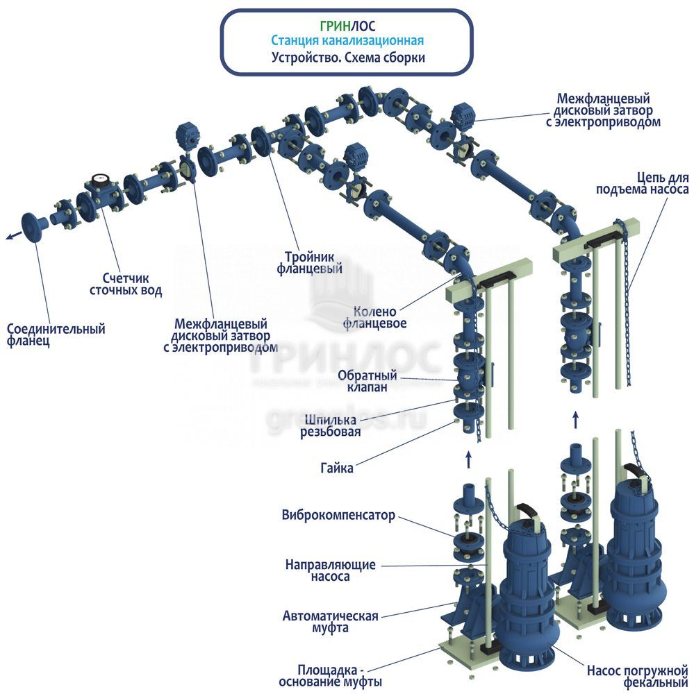 Основные элементы промышленной канализационной насосной станции Гринлос БМ КНС 100-120