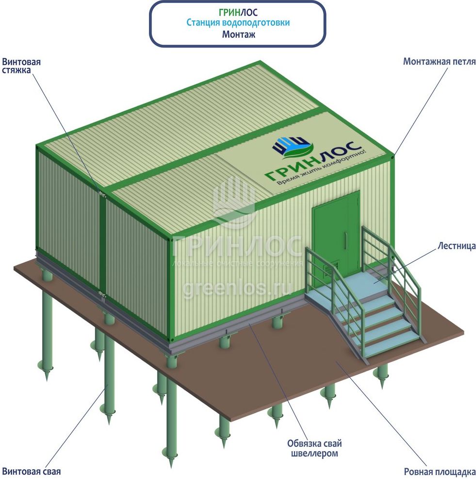 Контейнер, в который установлена система водоподготовки, утеплен и оборудован системой вентиляции, освещения, комплектом противопожарных средств.
