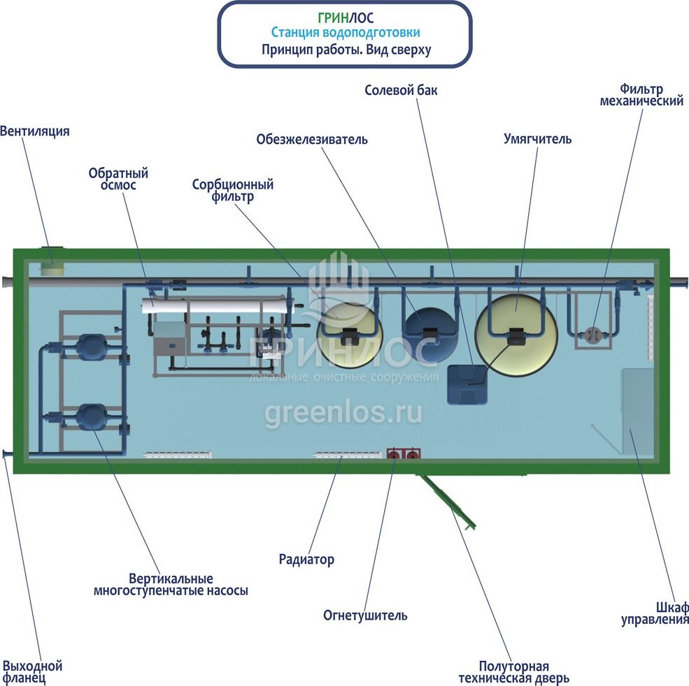 Блочно-модульная станция водоподготовки Гринлос СВП 2 - применяется для очистка воды для пищевых производств, лабораторий, гостиниц. Полный спектр фильтрации: от механики до обратного осмоса. Обеспечивает очистку воды со скоростью 2 м3/ч. Модульная схема позволяет адаптировать количество и конфигурацию блоков под требования конкретного проекта. В конструкции модульной станции водоподготовки СВП 2 предусмотрены системы вентиляции, освещения и обогрева, что обеспечивает безопасную и удобную эксплуатацию в любых климатических условиях.