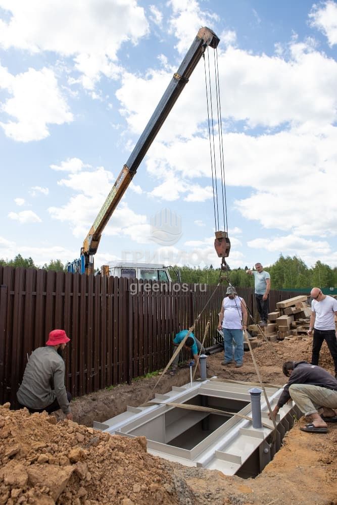 Земляные работы: подготовка котлована необходимых размеров, выравнивание и укрепление основания котлована. Установка и якорение ГРИНЛОС Погреб. Выполнение подключения сопутствующих систем (освещения, вентиляции).