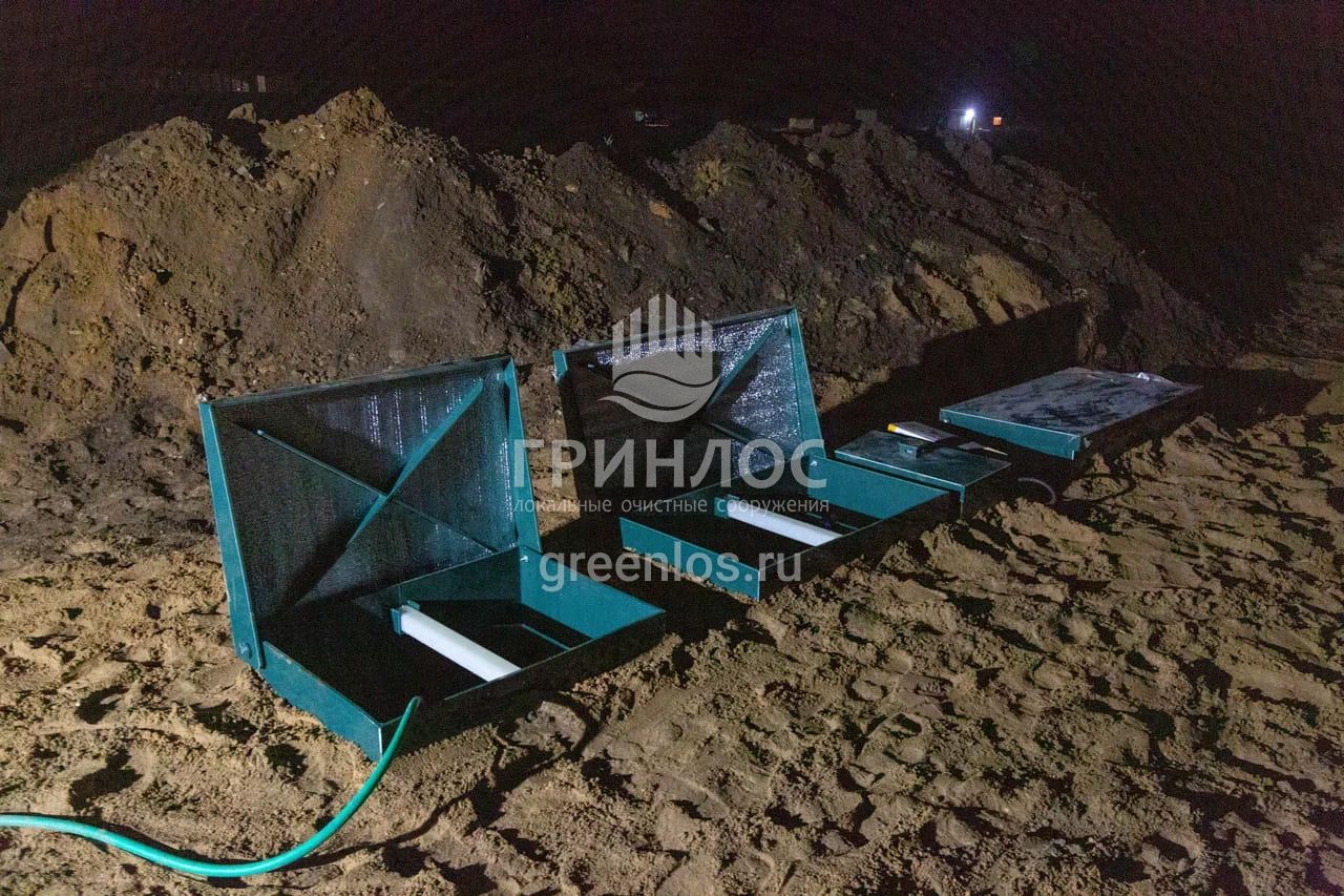 Оказали помощь с подбором подходящего условиям участка септика. Доставили на объект ГРИНЛОС Профи 15 Пр. Произвели земляные работы: подготовка котлована и траншей, уплотнение дна котлована гравийно-песчаной смесью. Установка септика ГРИНЛОС Профи 15 Пр в котлован, его обсыпка грунтом. Прокладка и подключение тсом.