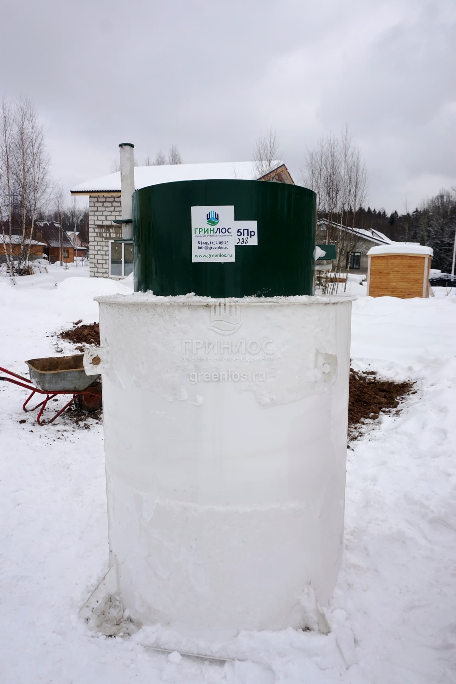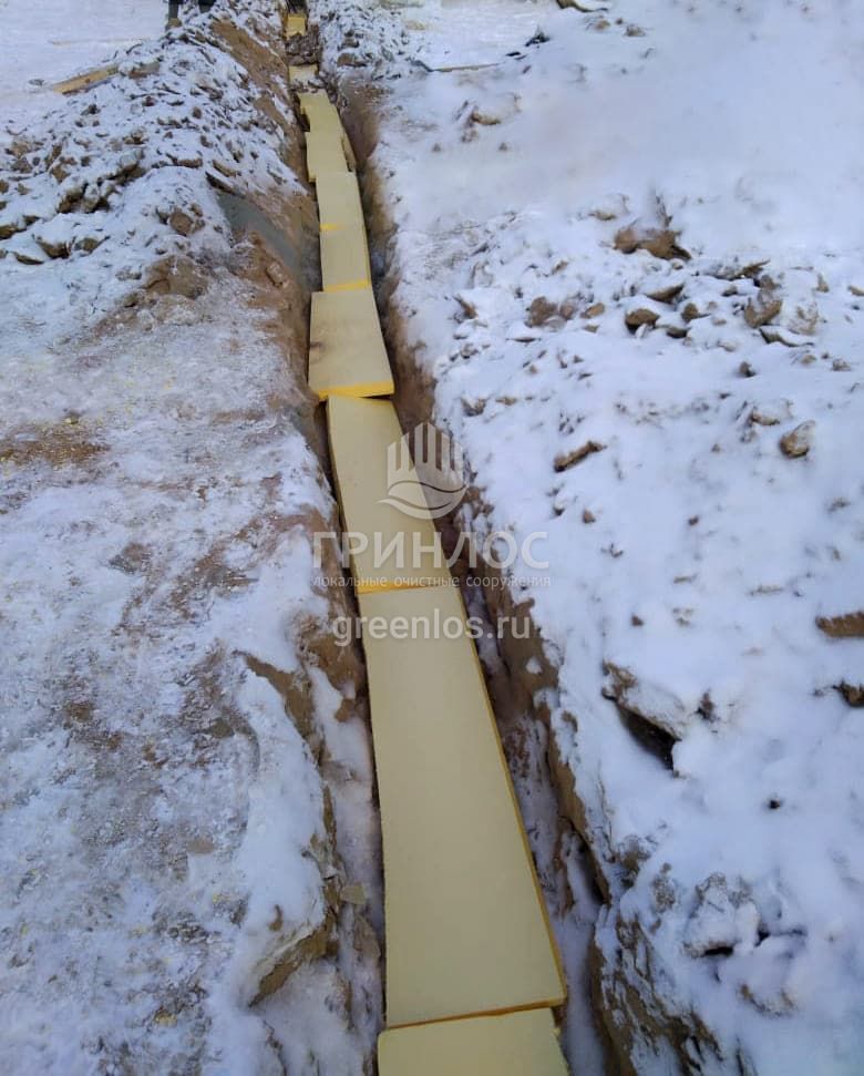 Доставка септика ГРИНЛОС Аква 5 Пр на загородный участок заказчика. Выбор места для установки. Подготовка котлована и траншей, установка септика, прокладка трубопровода, засыпка септика и труб песком. Для проверки работы системы был выполнен пробный запуск оборудования.