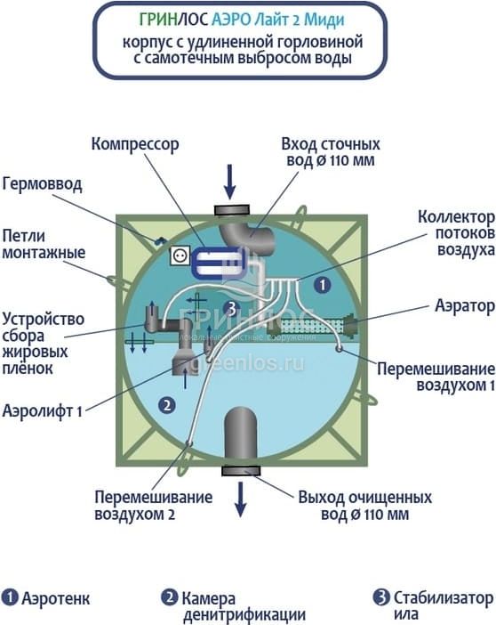 Отличительными особенностями септика Гринлос Аэро Лайт 2 Миди являются:
