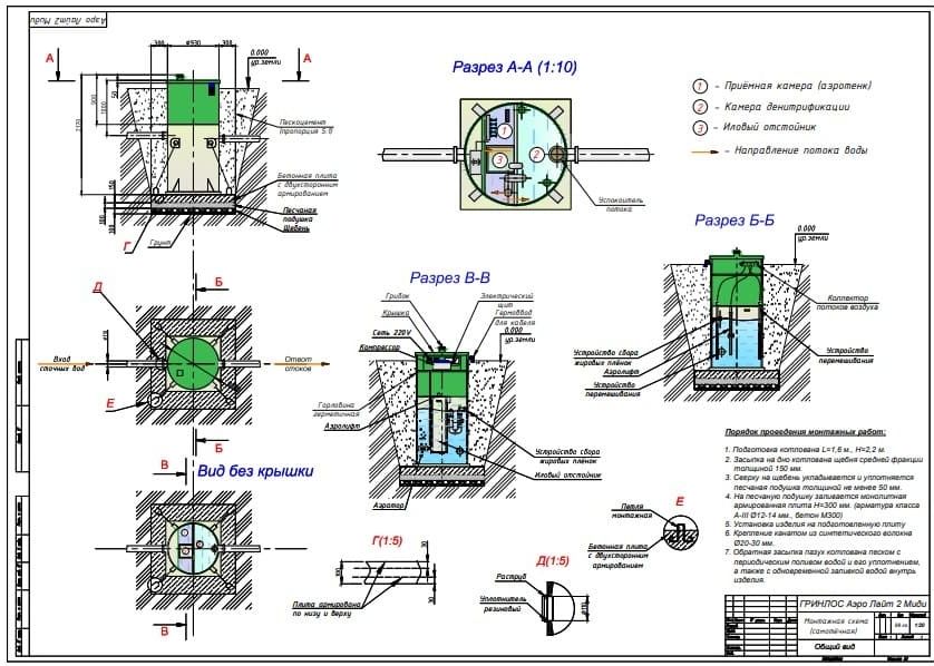 Монтаж септика Гринлос Аэро Лайт 2 Миди