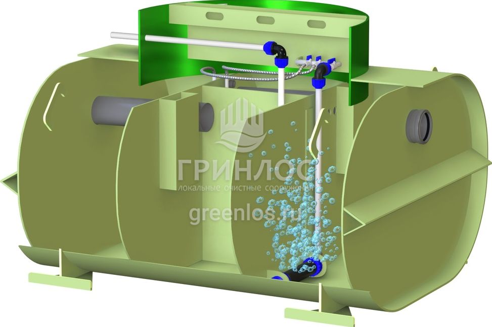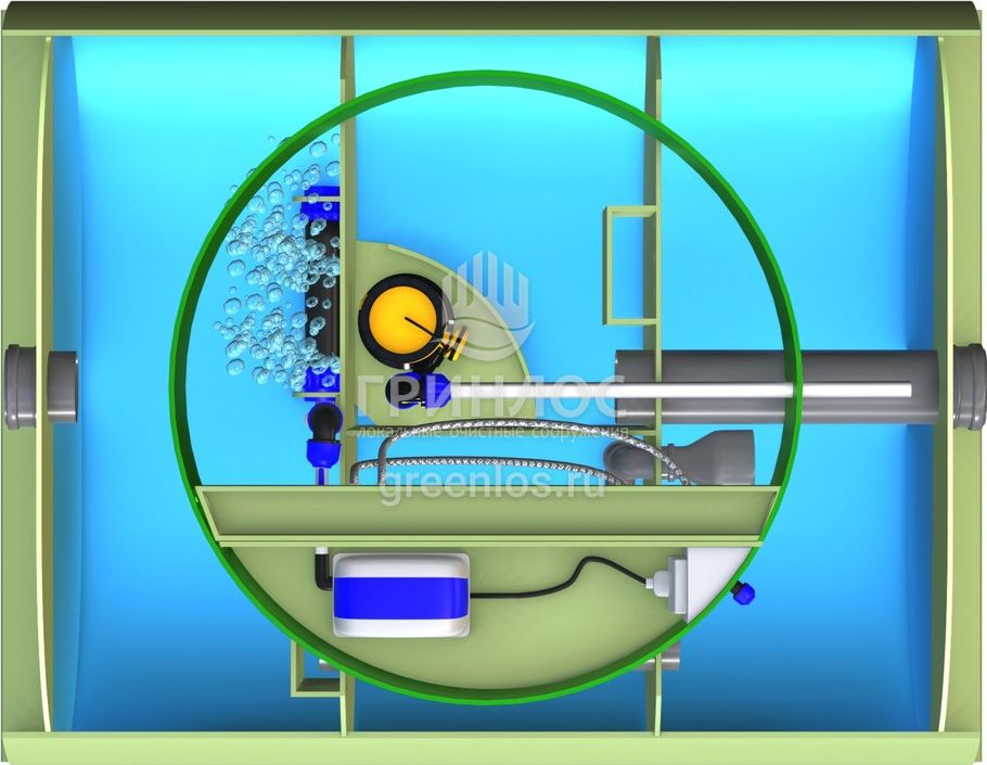 Cтанции очистки Гринлос Аэро Лайт Пр НК оснащены аэратором, который обеспечивает подачу воздуха для активного размножения аэробных бактерий.