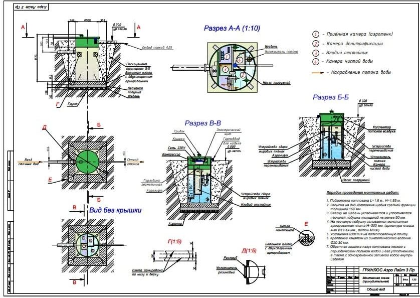 Перед непосредственным монтажом Гринлос Аэро Лайт 3 Пр специалисты осуществляют подготовку котлована. Его размеры определяются конструктивными особенностями выбранной модели оборудования. Ознакомиться с данными параметрами можно в приложении к ПС.