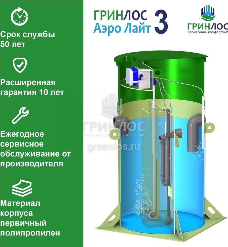 Отличительными особенностями септика Гринлос Аэро Лайт 3 являются:
