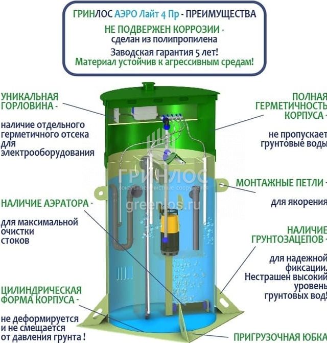 Отличительными особенностями септика Гринлос Аэро Лайт 4 Пр являются: