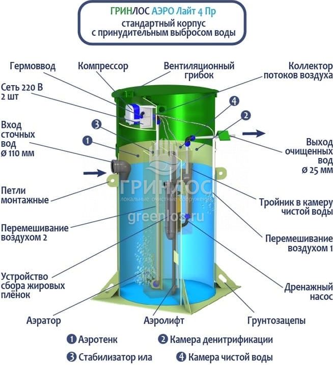 Модификации септика Гринлос Аэро Лайт 4 Пр