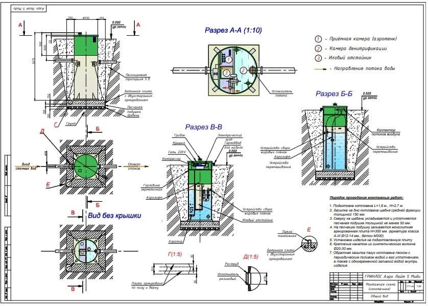 Монтаж септика Гринлос Аэро Лайт 5 Миди