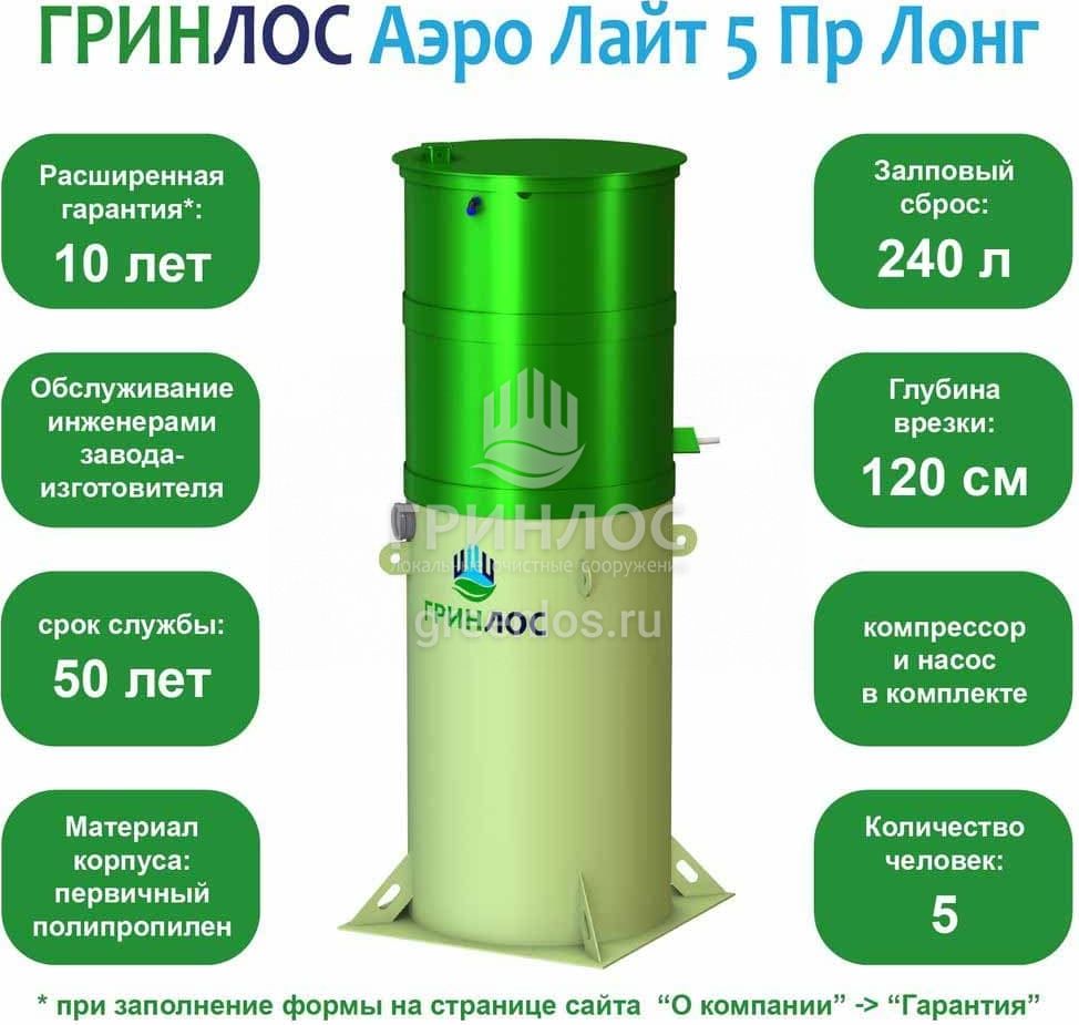 Модификации септика Гринлос Аэро Лайт 5 Пр Лонг