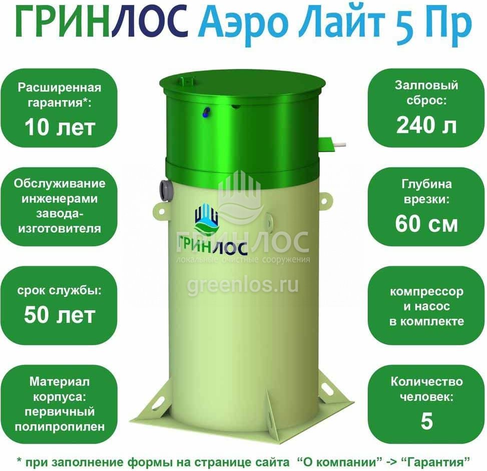 Модификации септика Гринлос Аэро Лайт 5 Пр