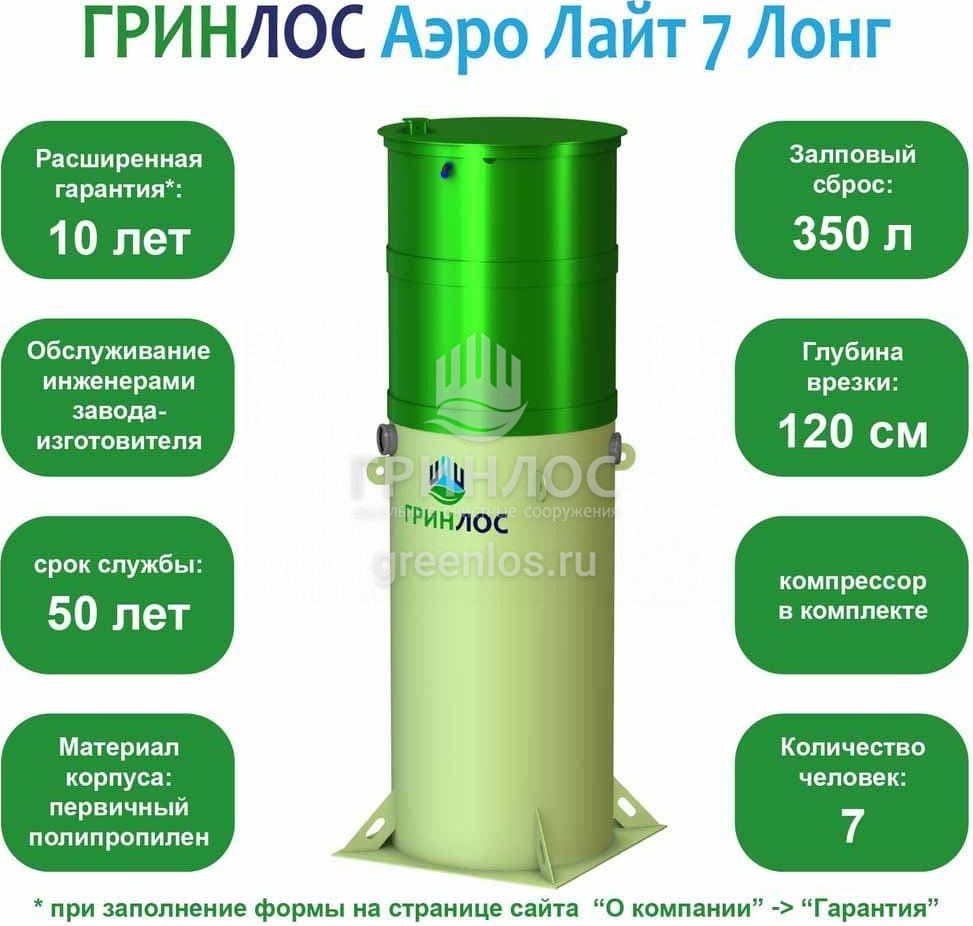 Отличительными особенностями септика Гринлос Аэро Лайт 7 Лонг являются: