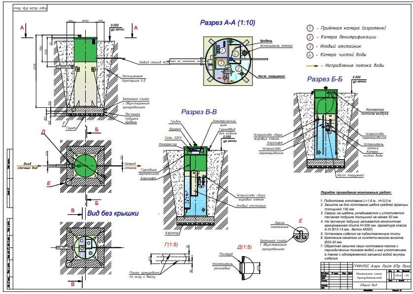Монтаж септика Гринлос Аэро Лайт 7 Пр Лонг