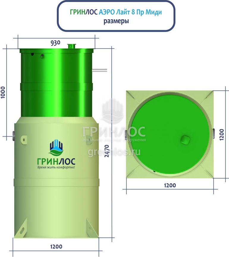 Модификации септика Гринлос Аэро Лайт 8 Пр Миди