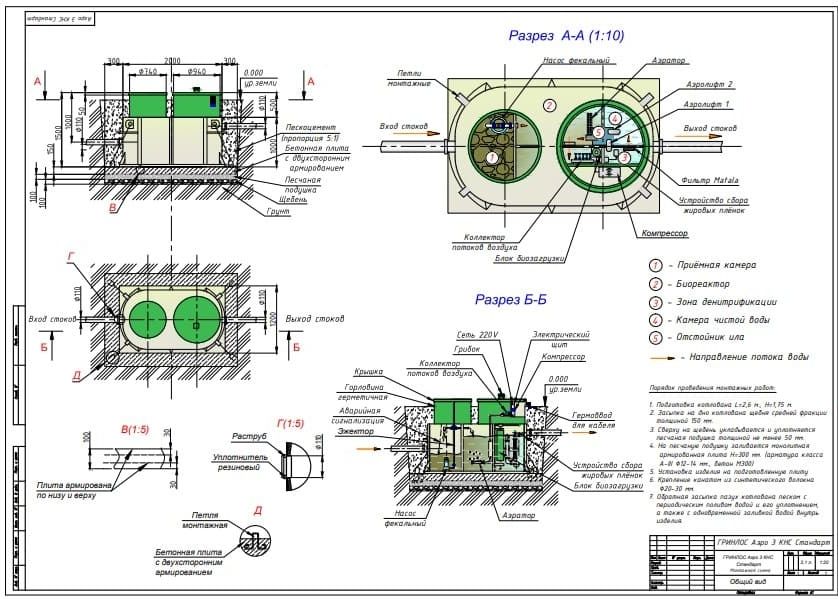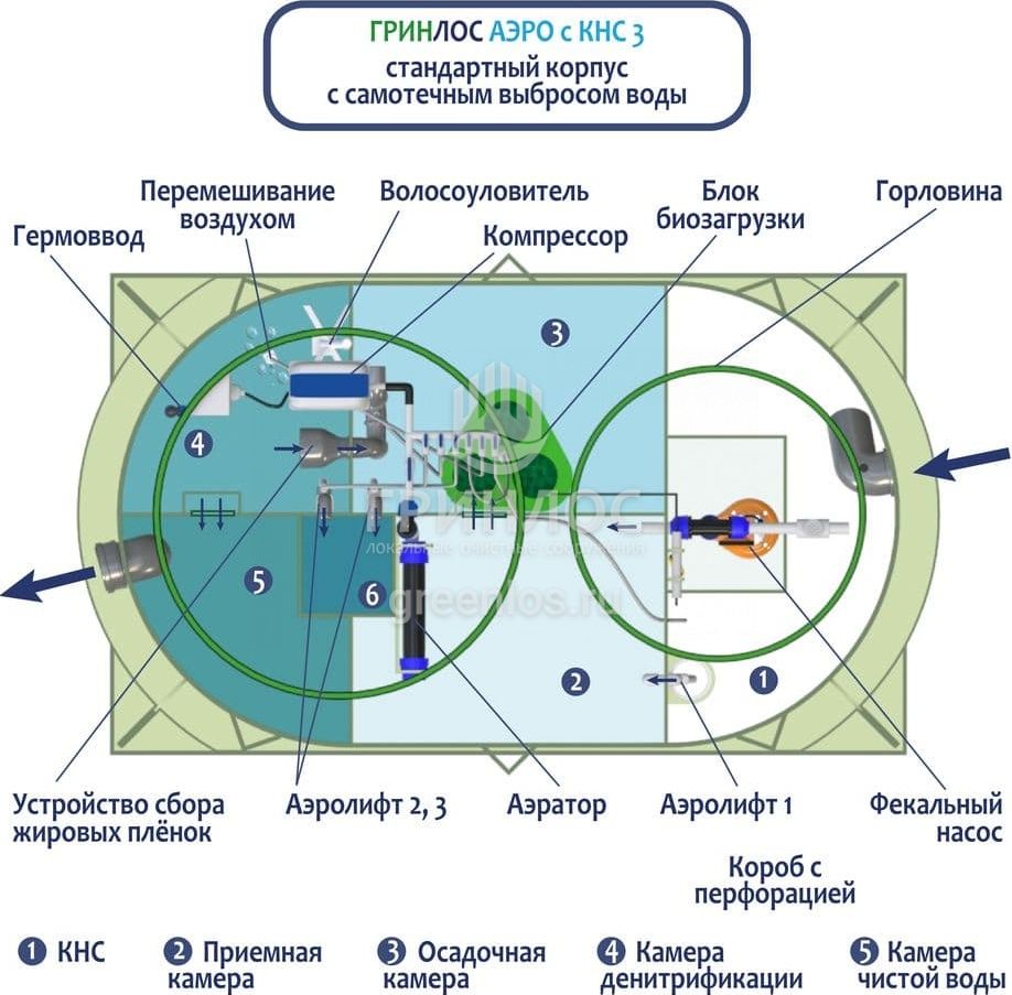 - применение в Гринлос Аэро с КНС 3 небольшого количества средств для чистки унитазов, санфаянса и кухонного оборудования.