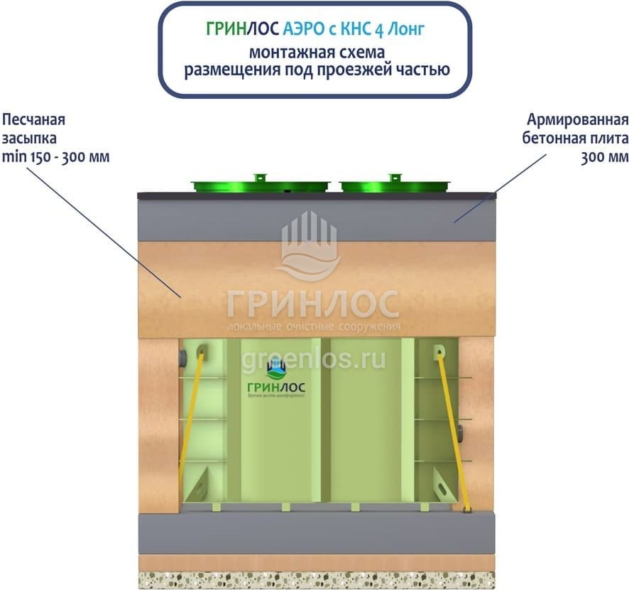 - применение в Гринлос Аэро с КНС 4 Лонг небольшого количества средств для чистки унитазов, санфаянса и кухонного оборудования.