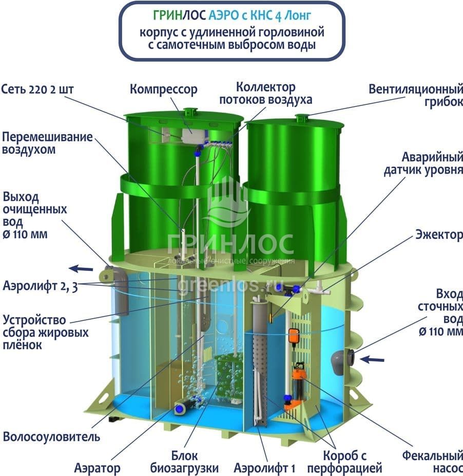 Модификации септика Гринлос Аэро с КНС 4 Лонг