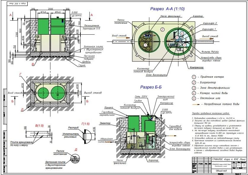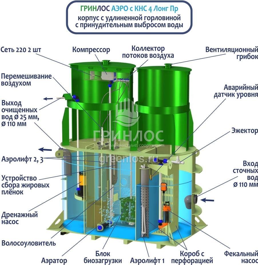 Модификации септика Гринлос Аэро с КНС 4 Пр Лонг