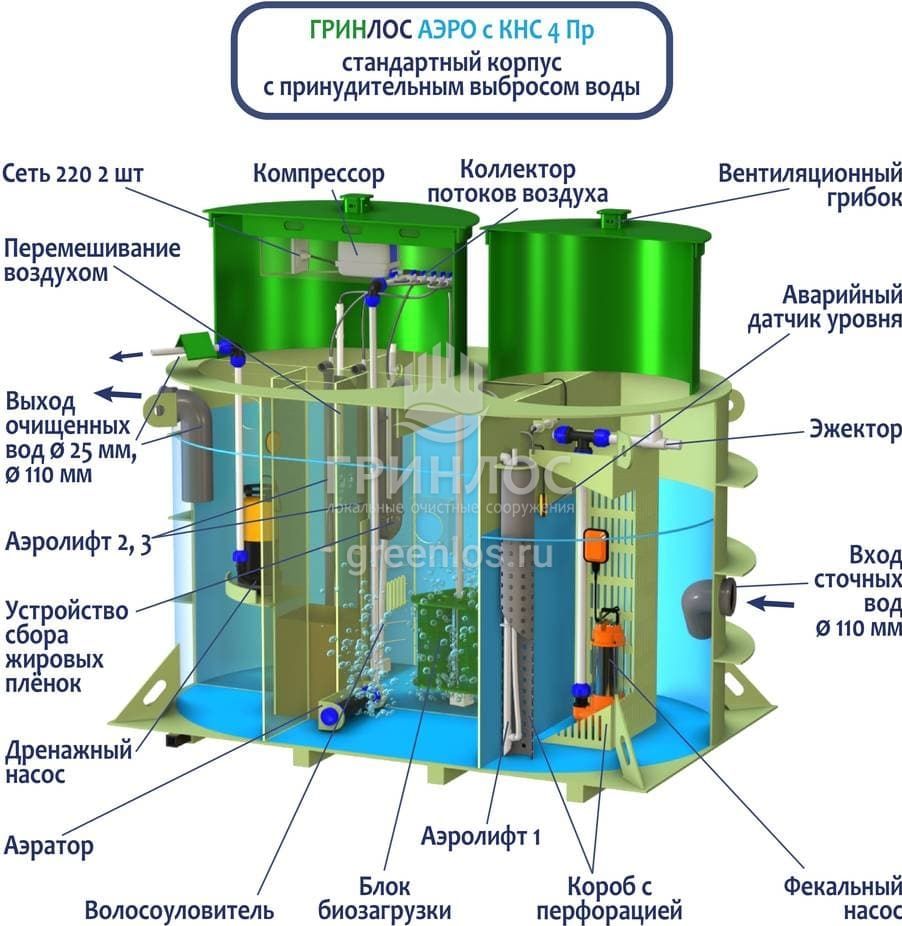 Модификации септика Гринлос Аэро с КНС 4 Пр