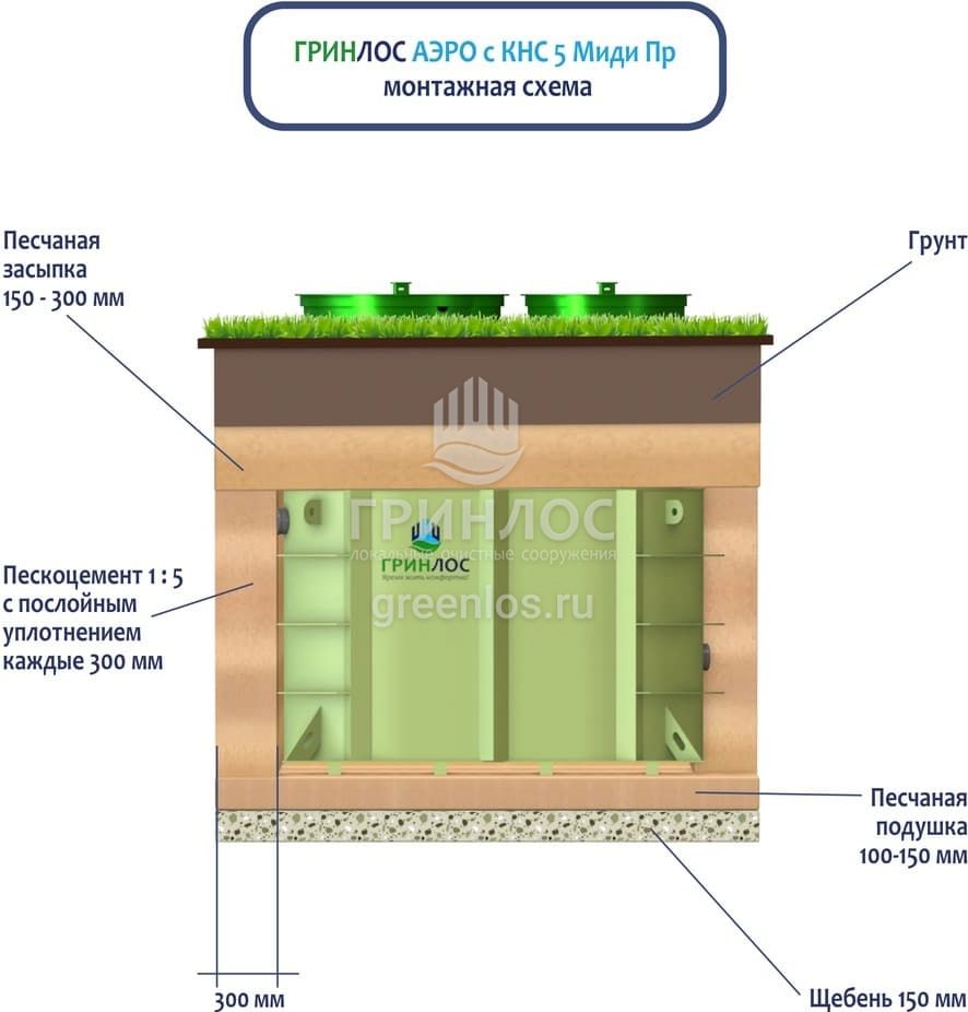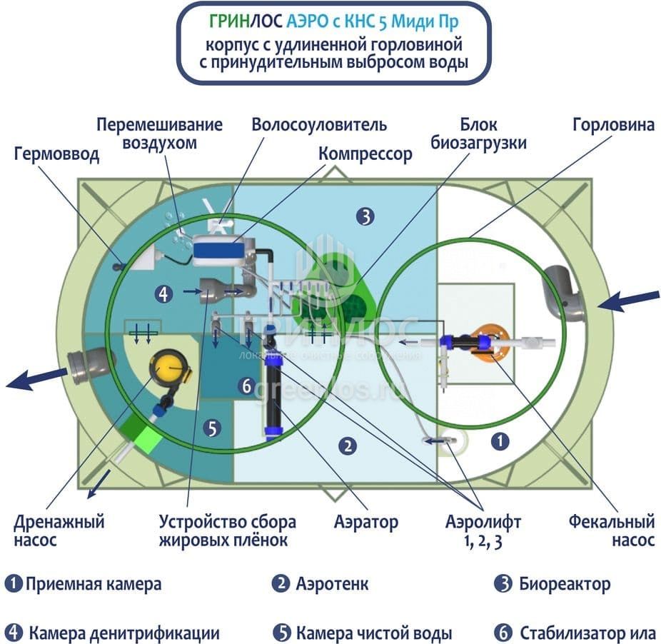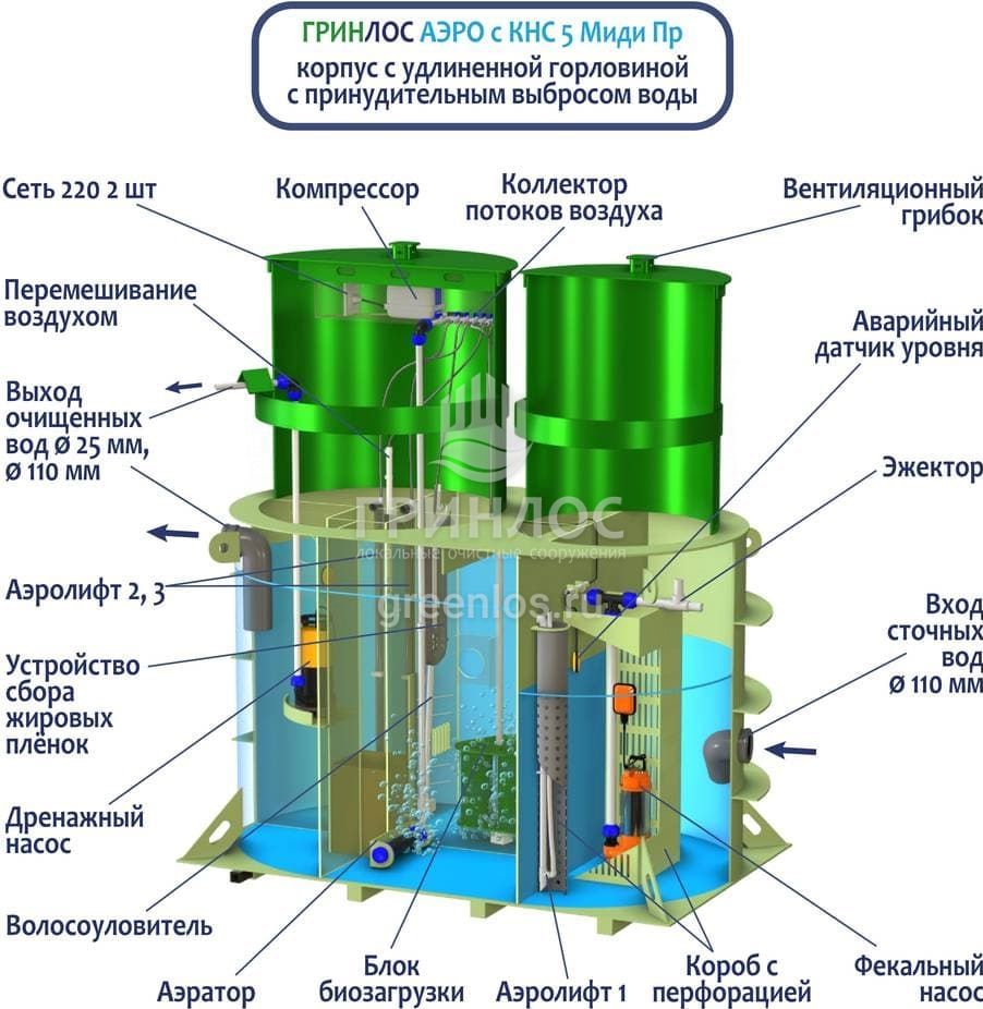 Модификации септика Гринлос Аэро с КНС 5 Пр Миди