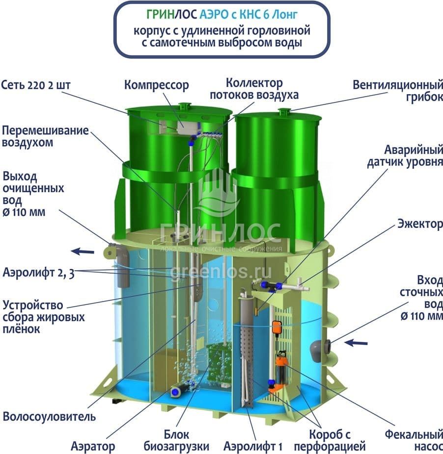 Модификации септика Гринлос Аэро с КНС 6 Лонг