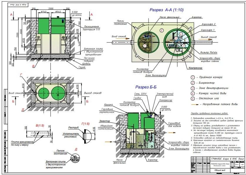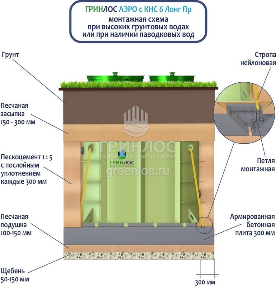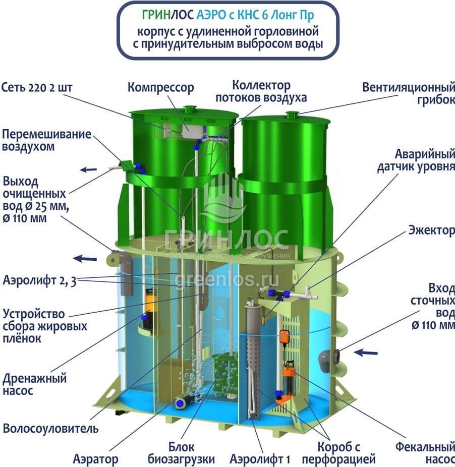Модификации септика Гринлос Аэро с КНС 6 Пр Лонг