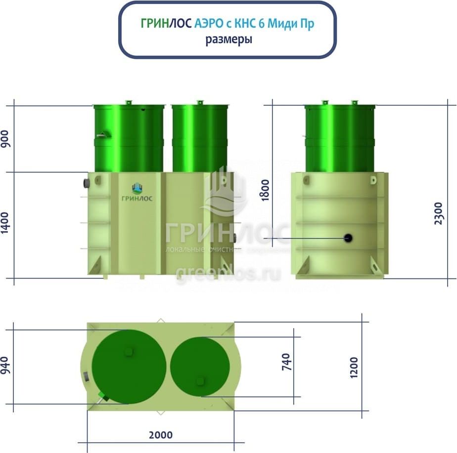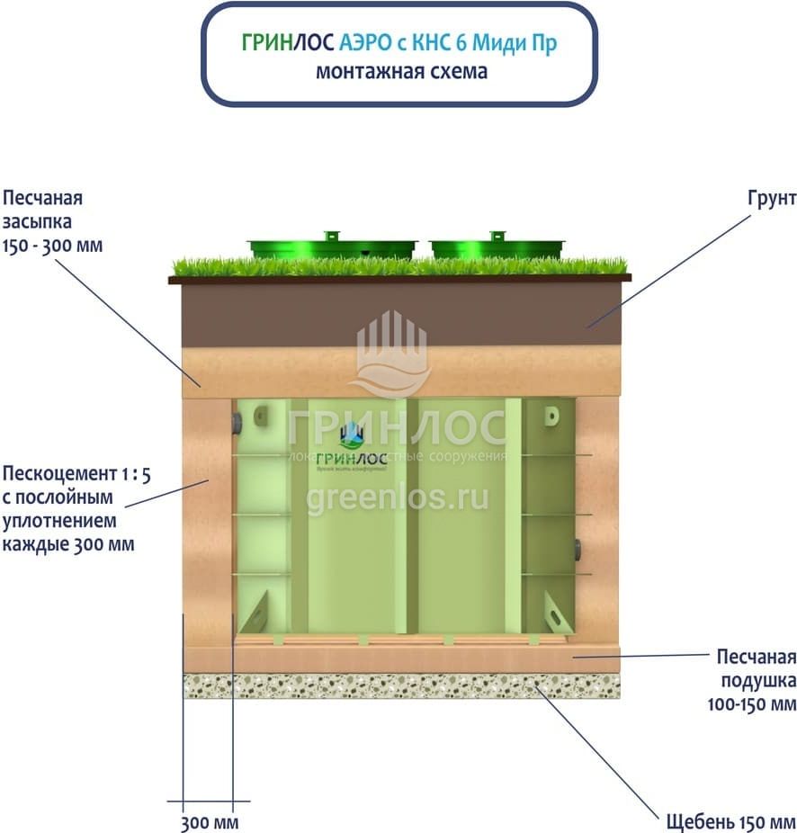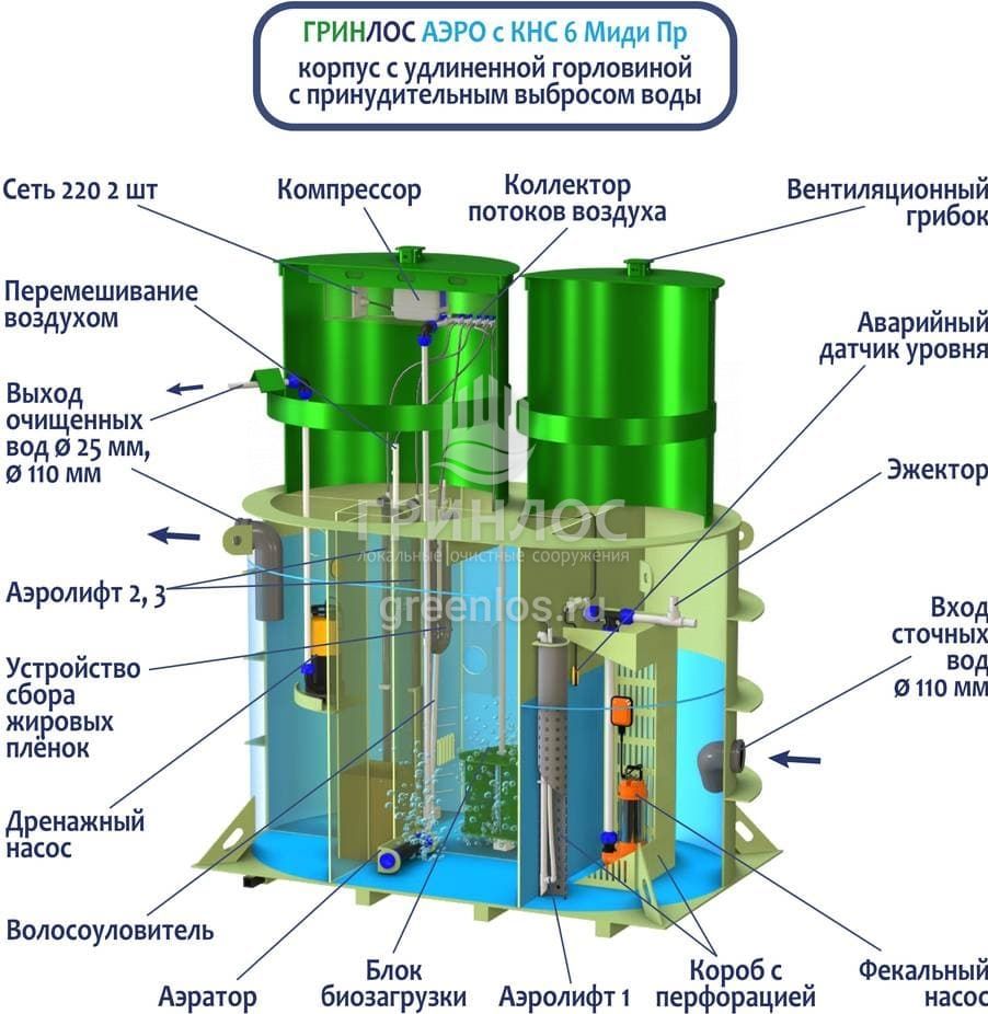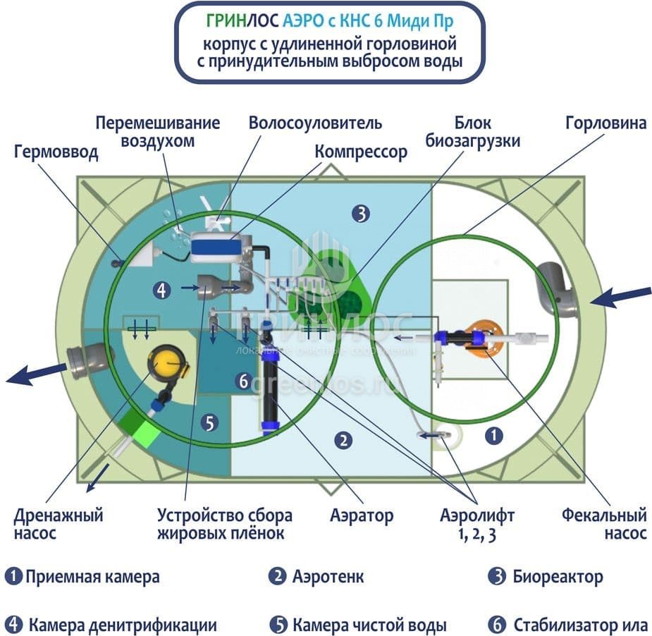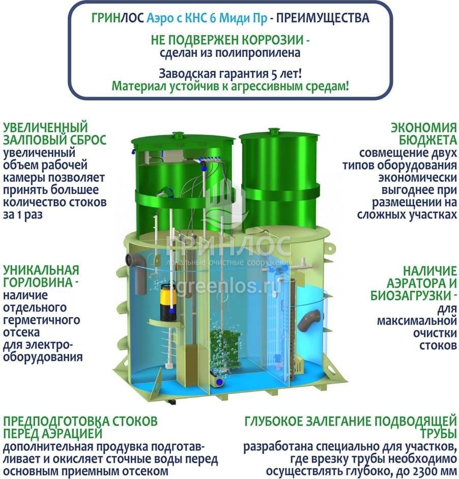 Модификации септика Гринлос Аэро с КНС 6 Пр Миди