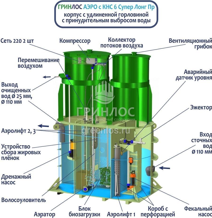 Модификации септика Гринлос Аэро с КНС 6 Пр Супер Лонг
