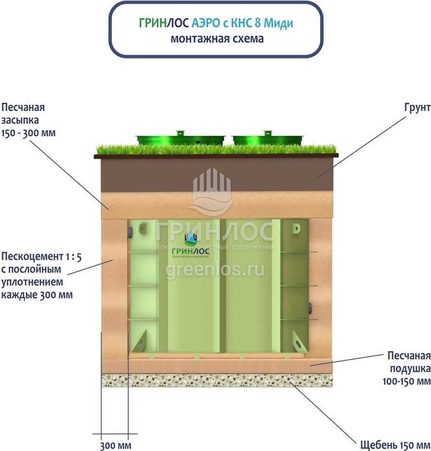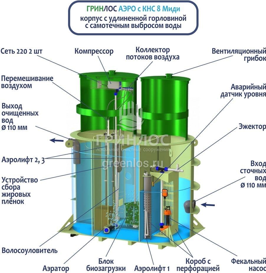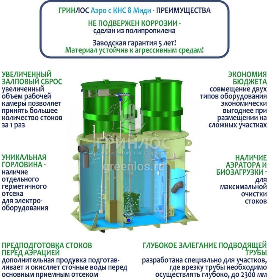 Модификации септика Гринлос Аэро с КНС 8 Миди