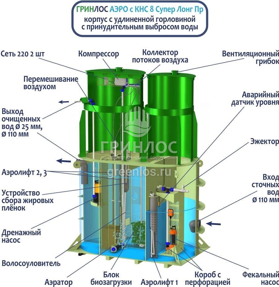 Модификации септика Гринлос Аэро с КНС 8 Пр Супер Лонг