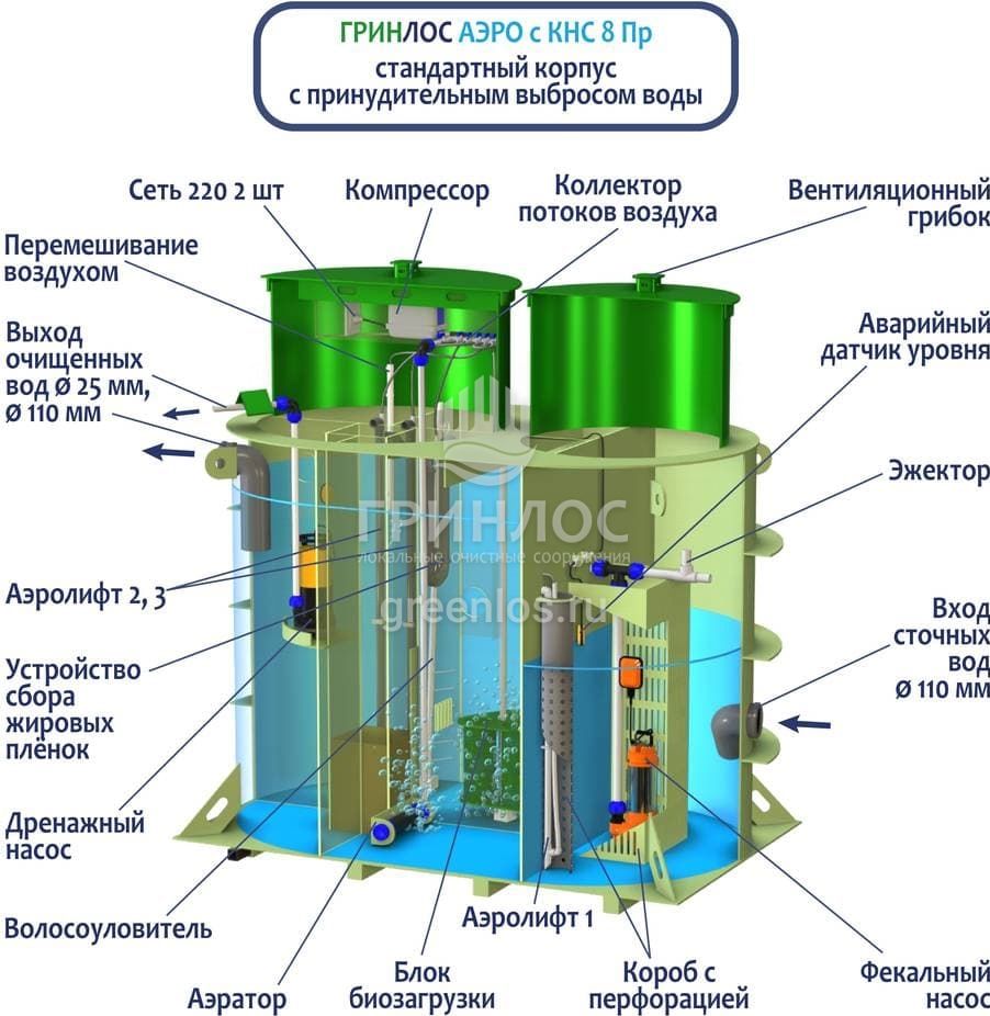 Модификации септика Гринлос Аэро с КНС 8 Пр