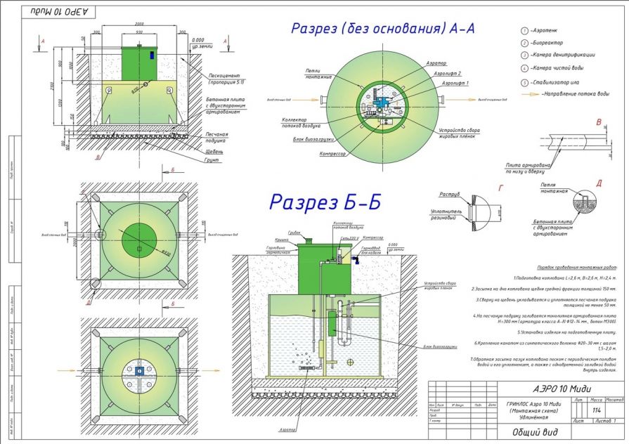 Монтаж септика ГРИНЛОС Аэро 10 Миди