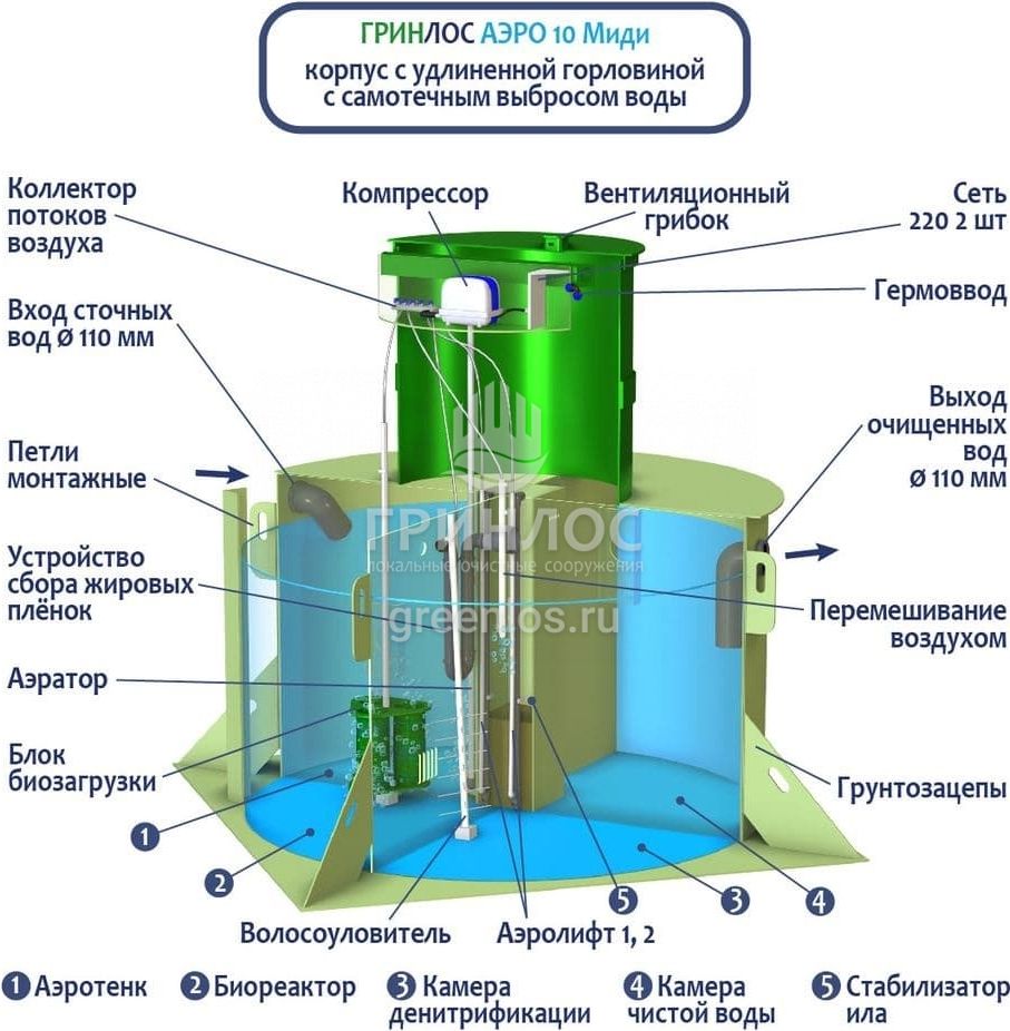 Модификации септика ГРИНЛОС Аэро 10 Миди