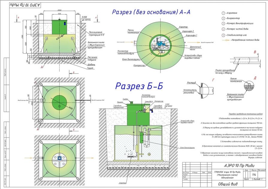 Монтаж септика ГРИНЛОС Аэро 10 Пр Миди