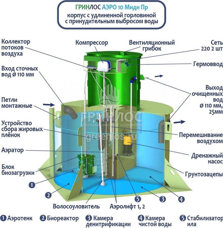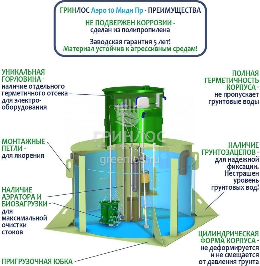 Модификации септика ГРИНЛОС Аэро 10 Пр Миди