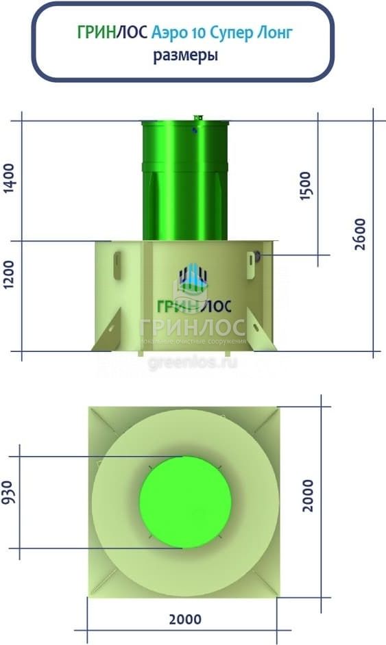ГРИНЛОС Аэро 10 Супер Лонг – это станция биологической очистки сточных вод аэрационного типа. Максимальный залповый сброс в септик равен 860 л, а производительность станции равна 2.8 м3/сутки, что рассчитано на обслуживание 10 условных пользователей.