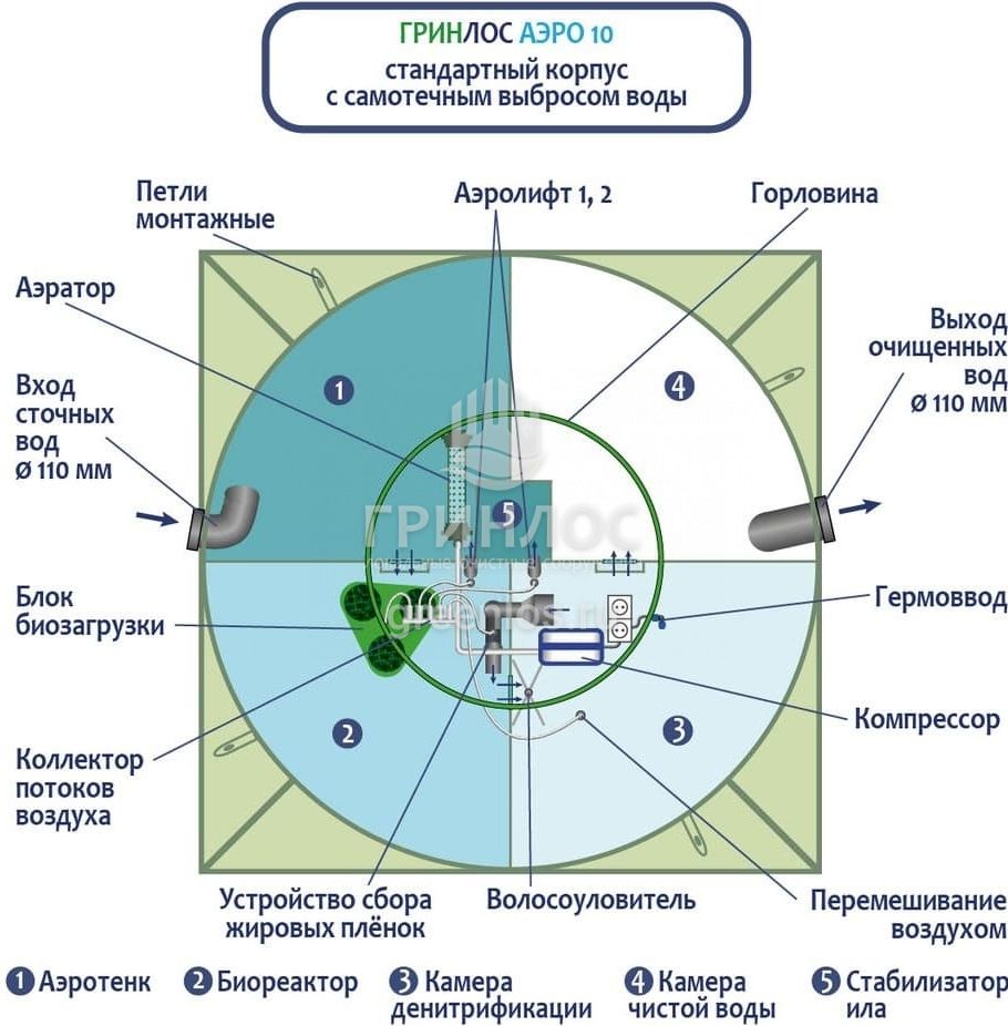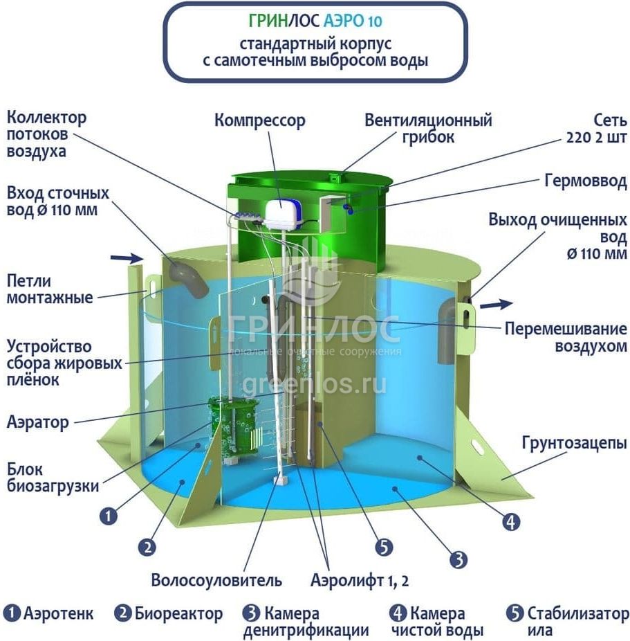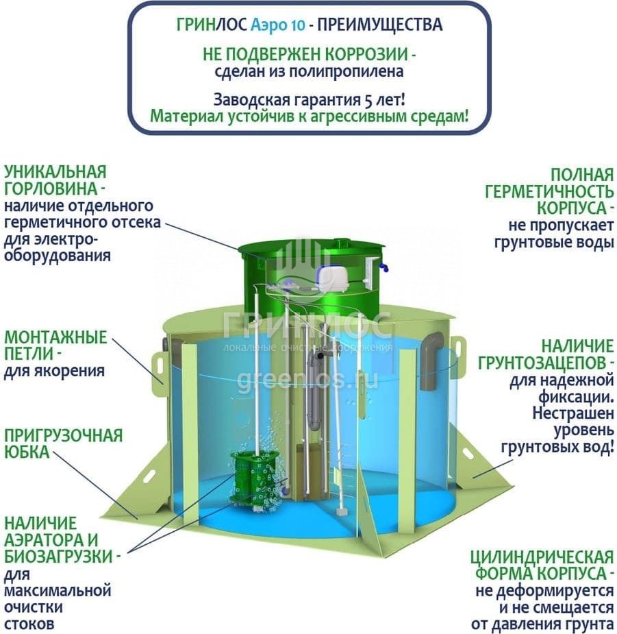 Отличительными особенностями септика ГРИНЛОС Аэро 10 являются: