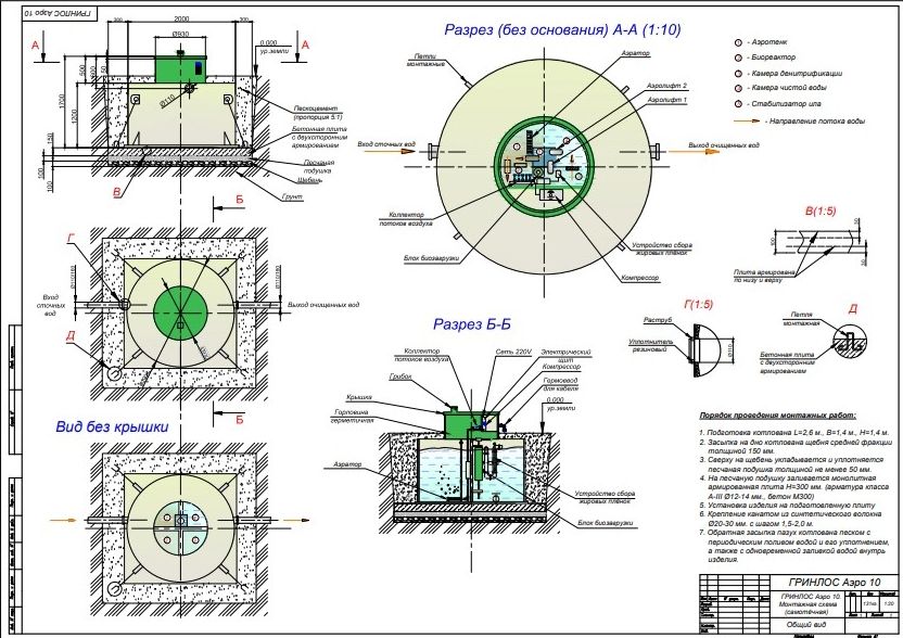 Монтаж септика ГРИНЛОС Аэро 10