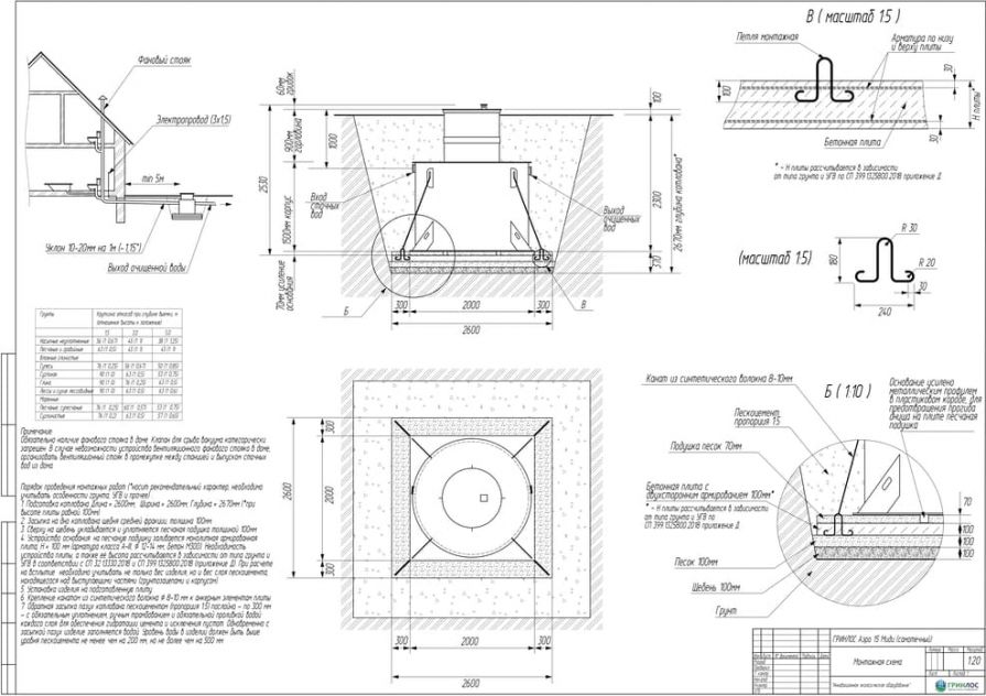 Целесообразно доверить выбор и монтаж оборудования специализированной компании. Перед непосредственным монтажом Оборудования специалисты осуществляют подготовку котлована. Его размеры определяются конструктивными особенностями выбранной модели оборудования. Ознакомиться с данными параметрами можно в приложении к ПС. По боковым стенкам корпуса должно быть сохранено свободное расстояние до грунта не менее 250 мм. Дно котлована нуждается в более тщательной подготовке. Его подвергают выравниванию с последующей засыпкой слоем песка, обладающим толщиной в пределах 10-15 см. Пазухи котлована подвергают обратной засыпке при помощи песка, который послойно поливают водой. Прежде чем приступить к аналогичным работам, емкость оборудования на четверть заполняют водой. Впоследствии количество воды внутри емкости увеличивают соразмерно уровню засыпки песком наружных стенок. Каждые 200 мм песка подвергаются ручному уплотнению.