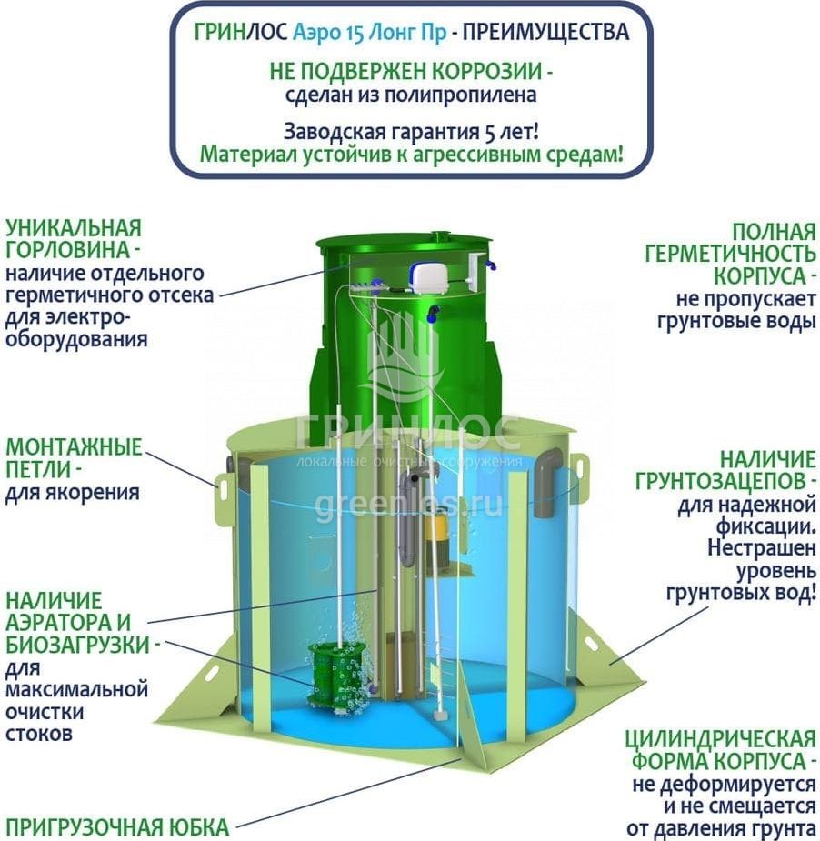 Модификации септика ГРИНЛОС Аэро 15 Пр Лонг