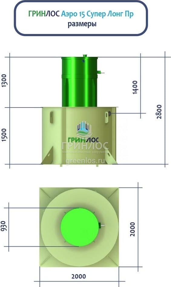 ГРИНЛОС Аэро 15 Пр Супер Лонг – это станция биологической очистки сточных вод аэрационного типа. Максимальный залповый сброс в септик равен 1100 л, а производительность станции равна 3 м3/сутки, что рассчитано на обслуживание 15 условных пользователей.