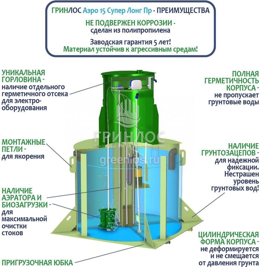 Модификации септика ГРИНЛОС Аэро 15 Пр Супер Лонг