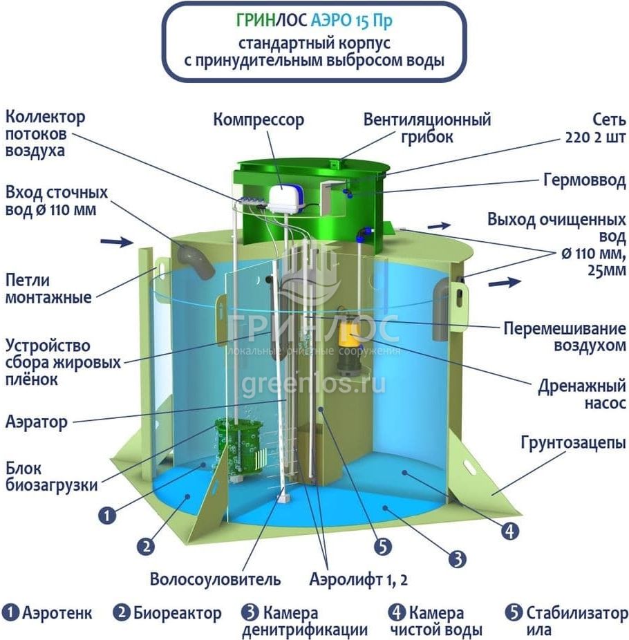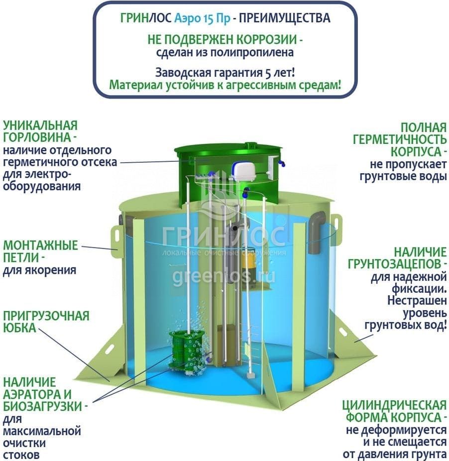 Отличительными особенностями септика ГРИНЛОС Аэро 15 Пр являются: