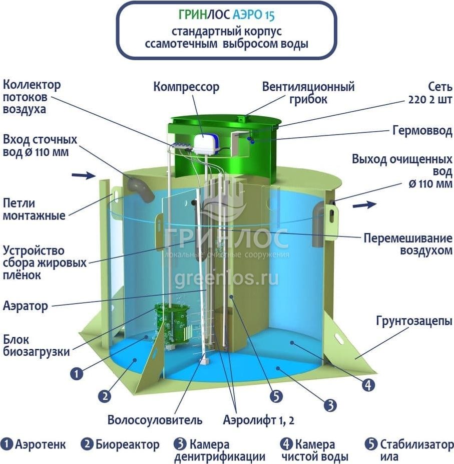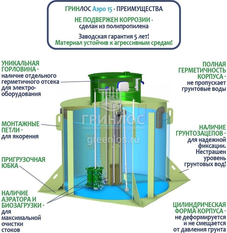 Отличительными особенностями септика ГРИНЛОС Аэро 15 являются:
