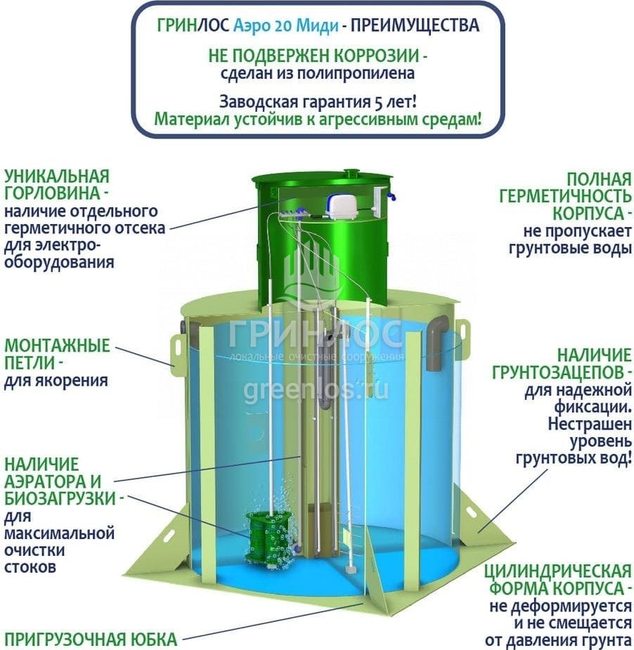 Модификации септика ГРИНЛОС Аэро 20 Миди