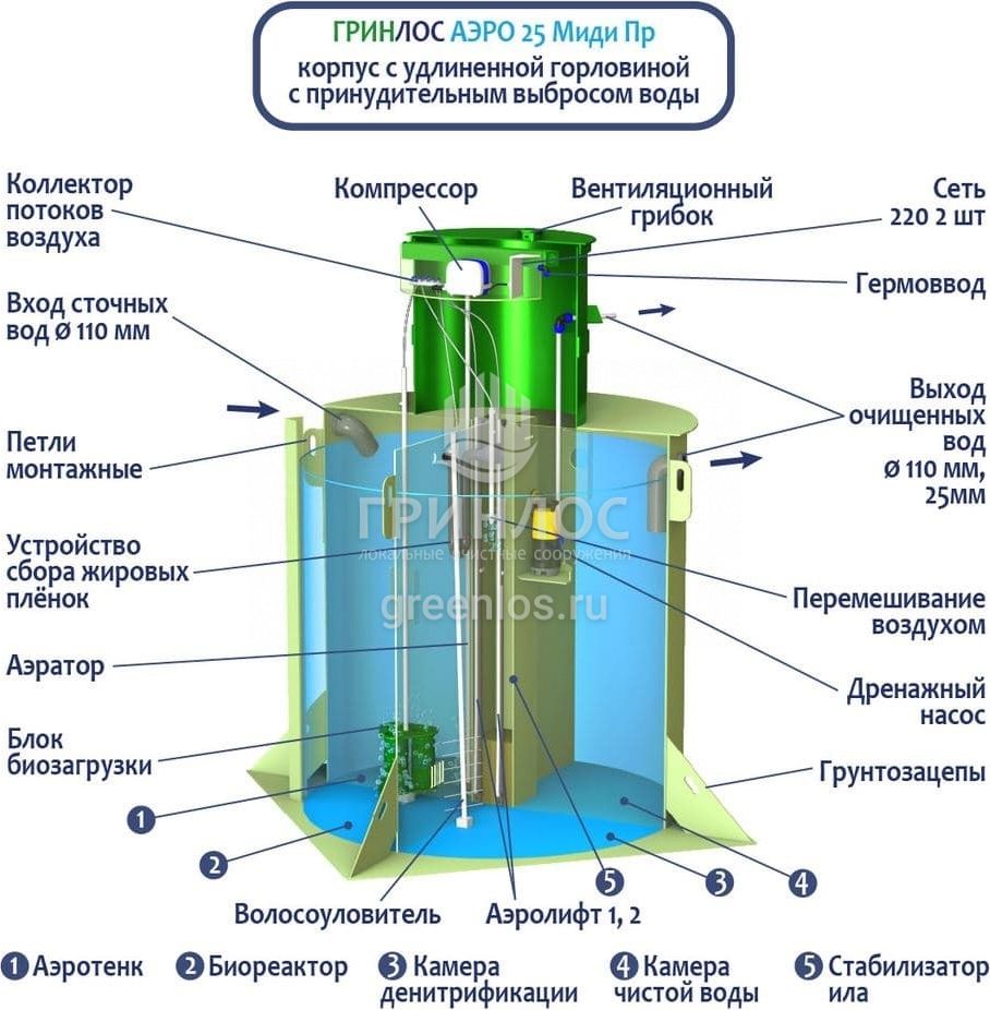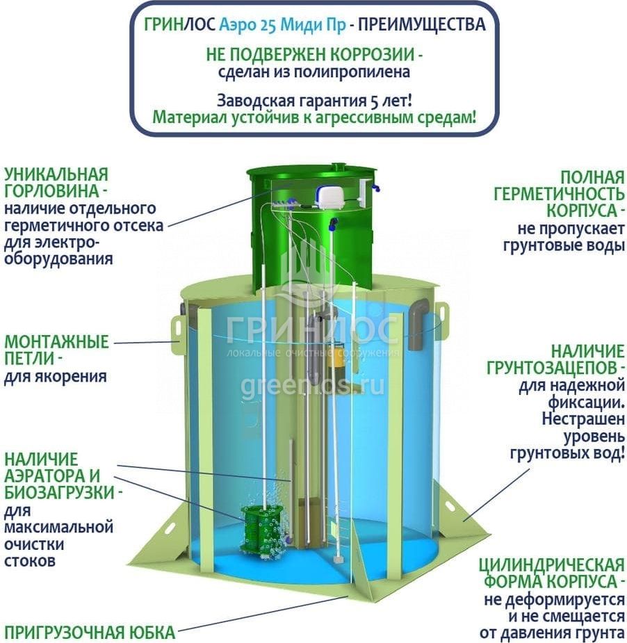 Модификации септика ГРИНЛОС Аэро 20 Пр Миди