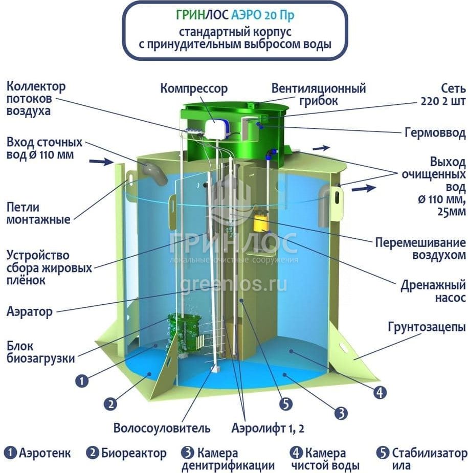 Отличительными особенностями септика ГРИНЛОС Аэро 20 Пр являются: