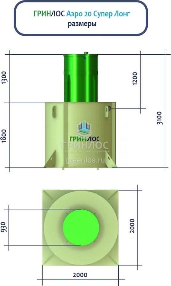 ГРИНЛОС Аэро 20 Супер Лонг – это станция биологической очистки сточных вод аэрационного типа. Максимальный залповый сброс в септик равен 1300 л, а производительность станции равна 3.5 м3/сутки, что рассчитано на обслуживание 20 условных пользователей.