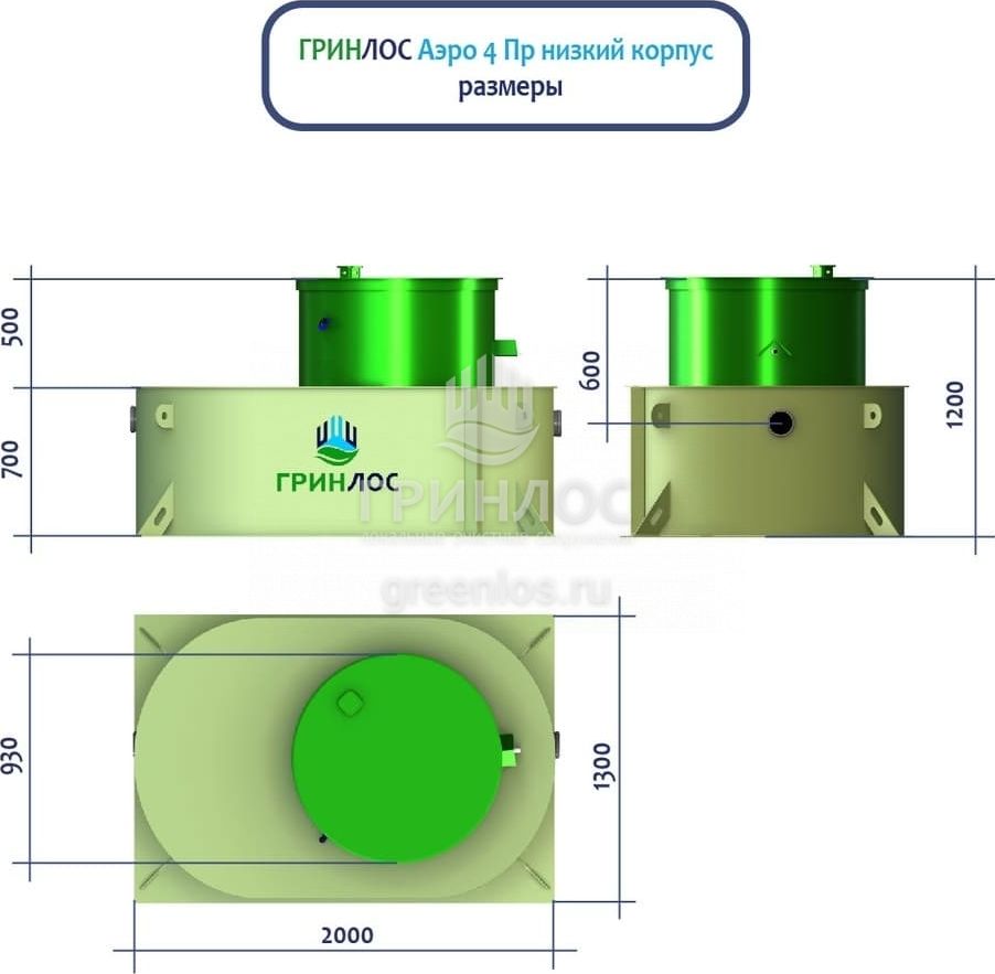 Модификации септика ГРИНЛОС Аэро 4 Пр низкий корпус